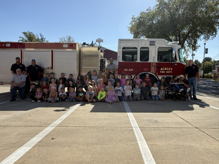 The kindergarten classes had fun riding the fire trucks to go visit the fire station today! Thank you, Ackley fire department for helping the kindergarten classes learn more about fire safety!